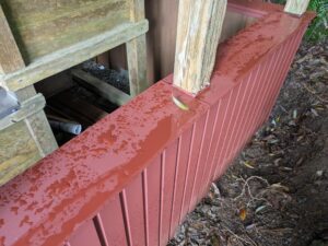 改修後は腰板の上の幕板も板金で囲い、少しでも建物が永くもつようにしました。