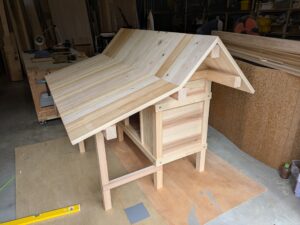 大工さんも、お社を造る機会はほとんど無いので、手探りで、元のお社を参考に原寸図で確認しながらの作業でした。