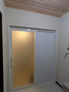 また、将来的な不安を減らすため、浴室乾燥機を設置し、入浴前後の温度差解消に対応。出入口は引戸タイプにして、バリアフリーにも配慮しています。