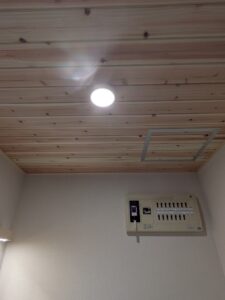 天井は、栗の木建築のこだわりで、杉板貼りとしました。やっぱり木はいいですね~。